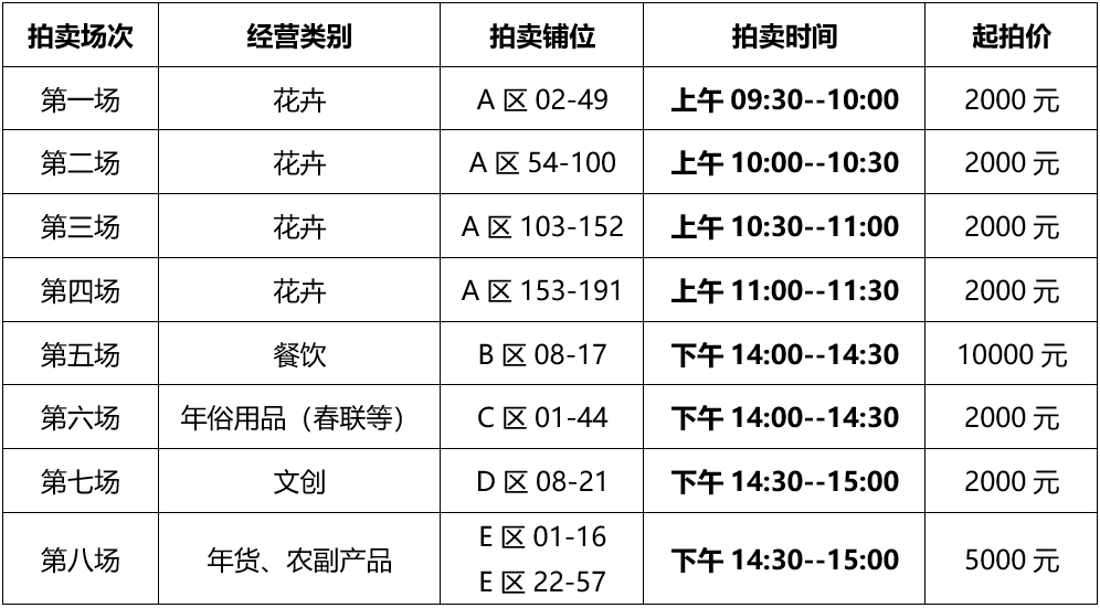四、各区域铺位拍卖时间2026年1月25日